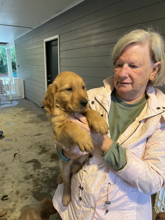 All pups have new homes! These pups are fifth generation from the "Flora Bama" line of pups. Registered from great lines. A beautiful litter all healthy puppies. Both parents are smallish Goldens -- dam is about 45 lbs, sire right at 65. Many pups spread from Georgia to Los Angeles from this line. We have a few not spoken for. If interested contact Dru at 205-821-1473 -- text is probably best. Priced at 1,400 per pup. Click Here for More Photos. Thanks! |